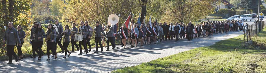 Po mszy zebrani przeszli w uroczystym pochodzie, przy akompaniamencie Orkiestry Dętej z Mełgwi, do budynku szkoły, gdzie kontynuowano imprezę. Wzięli w niej udział m.in.: reprezentujący wojewodę lubelskiego Grzegorz Lipa, reprezentujący marszałka województwa lubelskiego Mirosław Tarkowski, a także starosta krasnostawski Andrzej Leńczuk, wicestarosta Marek Nowosadzki, wiceprzewodnicząca rady powiatu krasnostawskiego Justyna Przysiężniak oraz władze gminy Fajsławice na czele z wójtem Januszem Pędziszem.