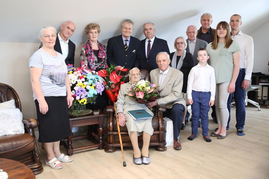 Oprócz burmistrza, jubilatkę odwiedził także Zbigniew Twaróg, kierownik piaseckiego oddziału KRUS-u i wiceprzewodniczący Radny Powiaty Świdnickiego, którzy przekazał dokument potwierdzający przyznanie specjalnego dodatku dla stulatków do emerytury.