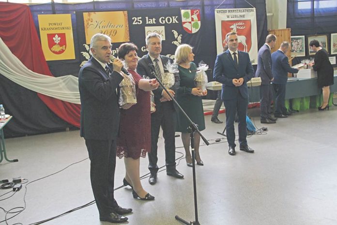 Dokonania jubilatów docenione zostały przez władze samorządowe. Starosta krasnostawski Andrzej Leńczuk i przewodniczący rady powiatu Witold Boruczenko wręczyli jubileuszowy grawerton dyrektorowi GOK Dariuszowi Zawadzie. Listy gratulacyjne na ręce dyrektora złożyli m.in. poseł Teresa Hałas i marszałek województwa lubelskiego Jarosław Stawiarski. (k)