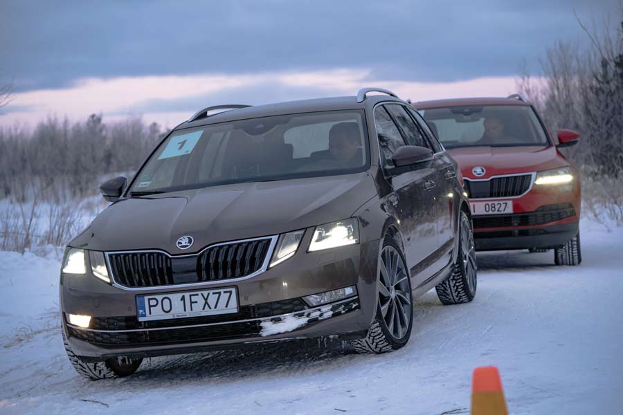 Do dyspozycji mieliśmy cztery modele: Kodiaq, Karoq, Octavia i Octavia Scout (wszystkie oczywiście z napędem 4×4) oraz wyzwanie w postaci czterech prób sprawnościowych, z czego dwie były odcinkami specjalnymi. Śnieżne drogi po zboczach góry, tunel z lodowym torem, czy szybki odcinek po płaskim dały możliwość przetestowania napędów w naprawdę ekstremalnych warunkach. Oczywiście celem wyjazdu nie było szaleństwo po białym, a poznanie rozwiązań technologicznych stosowanych przez czeską markę oraz nauka efektywnej i bezpiecznej jazdy po śliskich nawierzchniach.