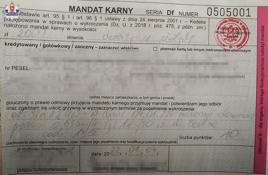 2 tys. zł mandatu nałożyli policjanci na kierowcę opla, który w ostatnią środę w miejscowości Bończa przekroczył dozwoloną prędkość o 65 km/h. To pierwsza tak dotkliwa kara wystawiona przez mundurowanych z Komendy Powiatowej Policji w Krasnymstawie po zmianie przepisów o wysokości mandatów.