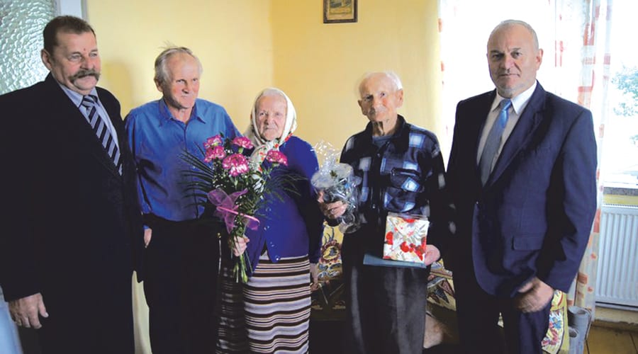 Państwo Roszkowscy mają najdłuższy staż małżeński w gminie Leśniowice. Ślub wzięli w kościele rzymskokatolickim w Bończy w 1946 r., a ślub cywilny tego samego roku w USC w Siennicy Różanej. Pani Władysława ma 91 lat, jej mąż jest 4 lata młodszy. Państwo Roszkowscy dochowali się dwóch synów, jeden z nich zmarł. Małżeństwo zajmowało się głównie rolnictwem. Mówią, że sekretem tak długiego stażu małżeńskiego jest wzajemny szacunek i ciężka praca. Jubilatom gratulacje i życzenia złożyli Wiesław Radzięciak, wójt gminy Leśniowice oraz Stefan Prokop, przewodniczący Rady Gminy Leśniowice. (opr. mo)