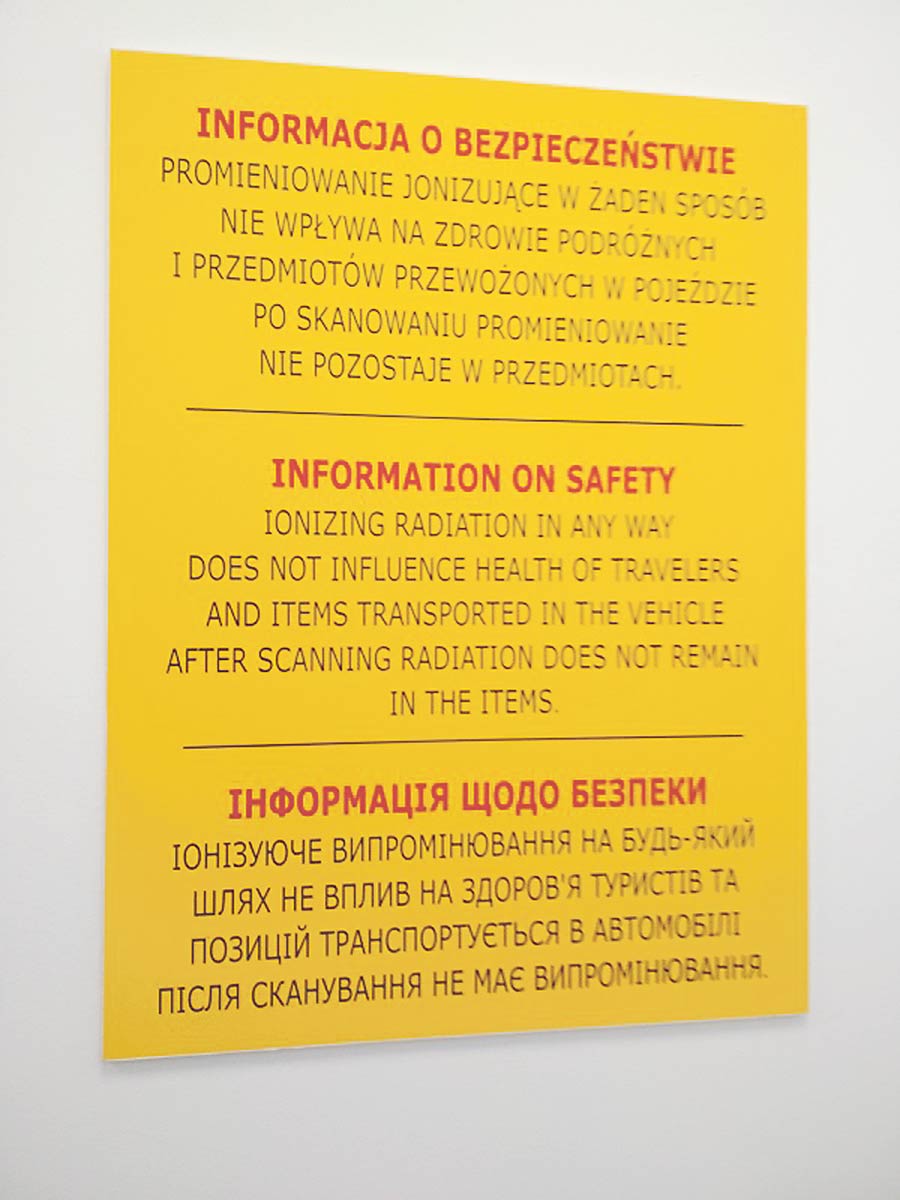 Jeśli zaś chodzi o kwestie informacyjne, to na terenie Oddziału Celnego Drogowego w Dorohusku znajdują się tabliczki dotyczące środków bezpieczeństwa (w trzech językach). Podróżni mają obowiązek stosowania się do zawartych na nich wytycznych – przed prześwietlaniem opuścić pojazd i zabrać z niego zwierzęta. Zgodnie z informacją podaną na jednej z tablic, promieniowanie w żaden sposób nie wpływa na zdrowie podróżnych oraz przedmiotów przewożonych w pojeździe – po skanowaniu nie pozostaje w przedmiotach.