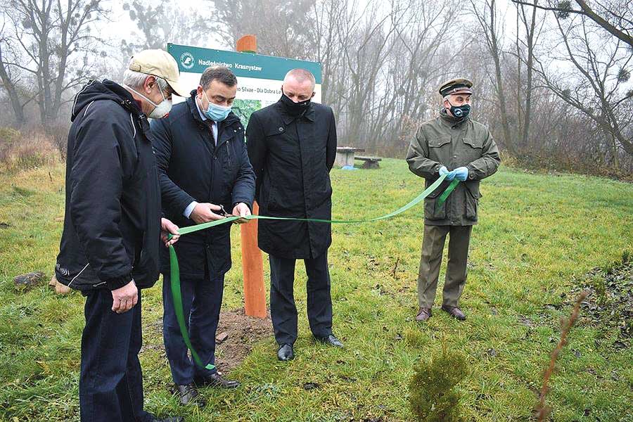 W ubiegły poniedziałek odbyło się symboliczne otwarcie ścieżki „Aleja 100 dębów – las Borek”. W wydarzeniu udział wzięli m.in. Robert Kościuk – burmistrz Krasnegostawu, jego zastępca Wojciech Kaczmarczyk, Waldemar Czajka – nadleśniczy Nadleśnictwa Krasnystaw oraz Stanisław Osiewicz – prezes Stowarzyszenia „Wspólny Krasnystaw”.
