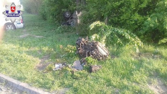 Jak ustalili wysłani na miejsce policjanci z chełmskiej drogówki, za kierownicą Forda Focusa siedział 19-letni mieszkaniec powiatu hrubieszowskiego. W pewnym momencie samochód zjechał z jezdni, staranował znak drogowy, obrócił się i bokiem uderzył w drzewo.