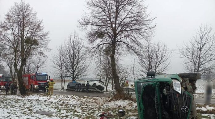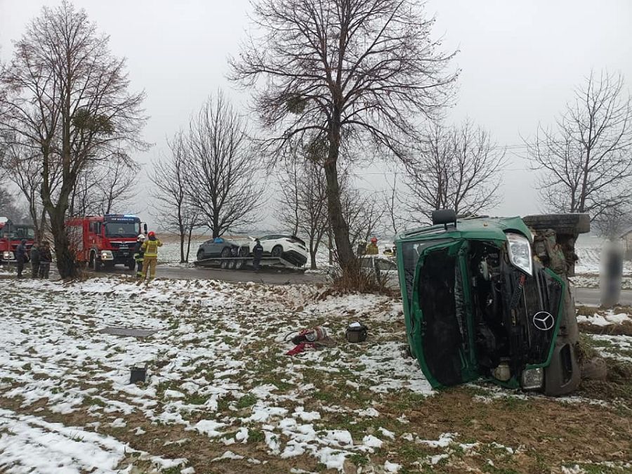Na skrzyżowaniu z drogą na Wolice kierujący autolawetą obywatel Ukrainy stracił panowanie nad pojazdem i wypadł do rowu. Przyczepa odpięła się, a jeden z przewożonych na lawecie samochodów osobowych zjechał z platformy. Kierujący nie odniósł obrażeń, został ukarany mandatem za spowodowanie zagrożenia na drodze. (p, for. OSP Kraśniczyn)