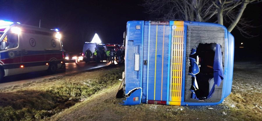 – Autobus rejsowy jadący z Ukrainy do Szczecina zjechał z drogi, a następnie wjechał do rowu i przewrócił się na bok. Wraz z kierowcą podróżowało w nim 25 osób – informuje st. asp. Elwira Domaradzka, rzecznik Komendy Powiatowej Policji w Świdniku.