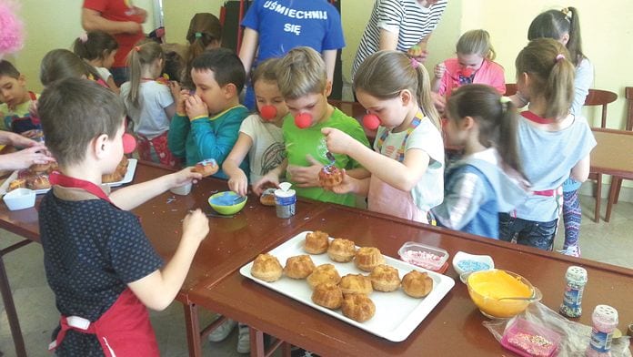 Uczniowie z klasy I „b” SP nr 1 w Krasnymstawie, wraz z wolontariuszami fundacji Dr Clown i uczniami ZSP nr 1 w Krasnymstawie, wzięli udział w przygotowaniu wielkanocnych babeczek. Ciastka trafiły do najmłodszych pacjentów kilku szpitali województwa lubelskiego, w tym do SP ZOZ w Krasnymstawie. (k)