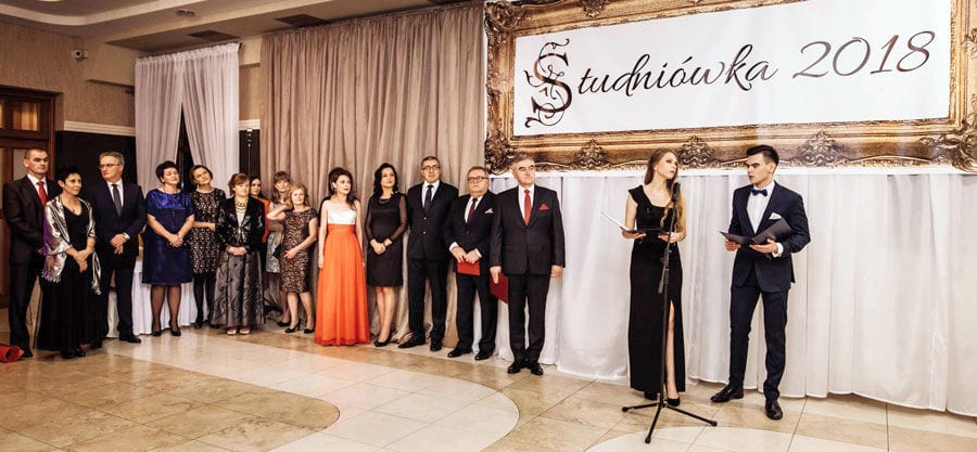 Wyczekiwana z niecierpliwością impreza rozpoczęła się częścią oficjalną, prowadzoną przez Aleksandrę Zielińską z klasy III c i Kamila Dzidę z III b. Dyrektor I LO Edyta Fidecka pogratulowała maturzystom ich wytrwałości w zdobywaniu wiedzy, życzyła dobrej zabawy oraz wspomniała o zbliżającej się nieuchronnie maturze, życząc jak najlepszych wyników na świadectwach dojrzałości. Nie zapomniała oczywiście o podziękowaniach skierowanych do nauczycieli, a także rodziców – organizatorów studniówki, których głównym reprezentantami byli Elżbieta Zadrąg i Sławomir Figiel. Następnie głos zabrali: wicestarosta krasnostawski Henryk Czerniej, przewodniczący rady powiatu Marek Nowosadzki i przewodniczący Rady Rodziców Sławomir Figiel. O podziękowaniach dla dyrekcji i swoich nauczycieli nie zapomnieli też uczniowie poszczególnych klas maturalnych. Następnie nadszedł wyczekiwany z niecierpliwością moment, gdy dyrektor Fidecka oznajmiła, że „Poloneza czas zacząć!”. Każda z klas zaprezentowała inny układ taneczny. Po polonezie maturzyści bawili się do białego rana. (fot. Perfect Wedding Zbigniew Kiecana)