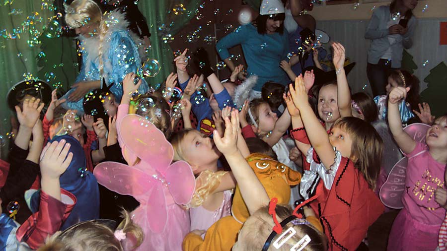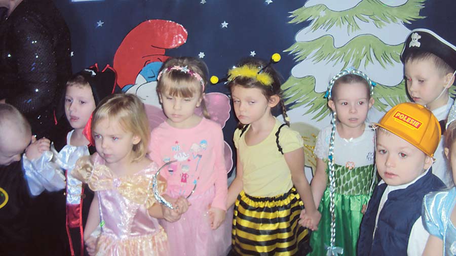 Dzieci przebrane były za bohaterów bajek i filmów. Wystrój sali wprowadził w radosny świat „Smerfów”. Wodzirej zachęcał wszystkich do tańca skoczną i rytmiczną muzyką. Zabawa była przednia!