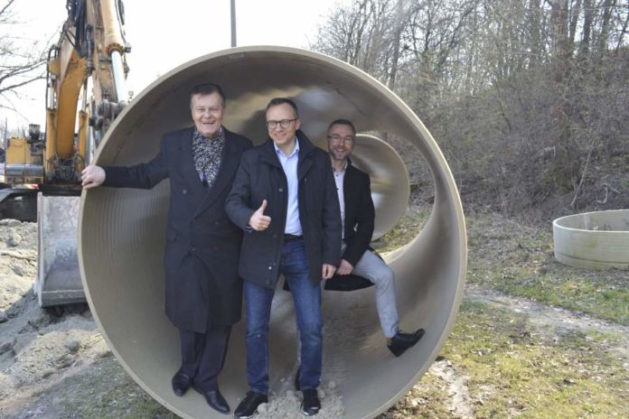 Przy okazji władze miasta pochwalili się inną inwestycją realizowaną dzięki zewnętrznemu dofinansowaniu – budową kolektora wód deszczowych, na którą przed dwom laty udało się pozyskać ok. 26 mln złotych unijnej dotacji z Programu Operacyjnego Infrastruktura i Środowisko 2014-2020. Budowa szacowana na ponad 30 mln złotych, którą miasto z własnych pieniędzy prowadziłoby przez kilka, a może nawet kilkanaście lat, jest prawie na finiszu. Do zrobienia pozostało już tylko ostatnie 500 metrów kolektora, oczyszczalnia ścieków i rów retencyjny i całość będzie gotowa w ciągu najbliższych miesięcy.