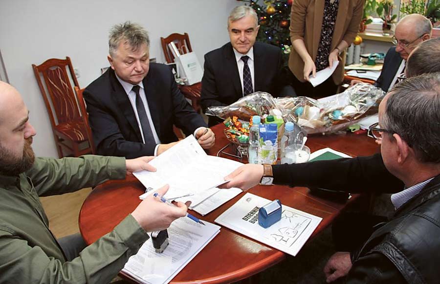 Starosta krasnostawski Andrzej Leńczuk, wicestarosta Marek Nowosadzki i skarbnik powiatu Janusz Cięciera podpisali umowy na termomodenizację Domu Pomocy Społecznej w Krasnymstawie.