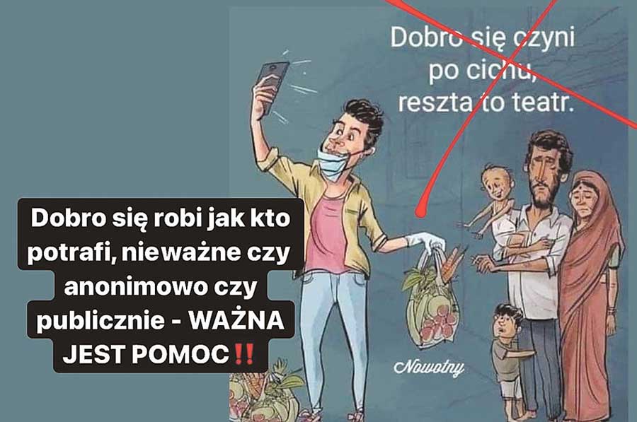 Całą Polskę obiegło zdjęcie ministra Dworczyka, który niesie paczkę konserw dla pierwszych uchodźców z Ukrainy. Oczywiście nie pomagał on w rozładowaniu transportu żywności, a cała sytuacja została zaaranżowana dla potrzeb wykorzystania zdjęcia w mediach, również społecznościowych. Bardzo szybko w jego ślady poszli niektórzy z naszych lokalnych celebrytów, polityków czy aktywistów, którzy niby pod płaszczykiem niesienia pomocy całkiem podobno przypadkiem zrobili sobie po kilka, kilkanaście zdjęć na tle uchodźców i jeszcze szybciej umieścili relację na Facebooku, Instagramie czy Twitterze.