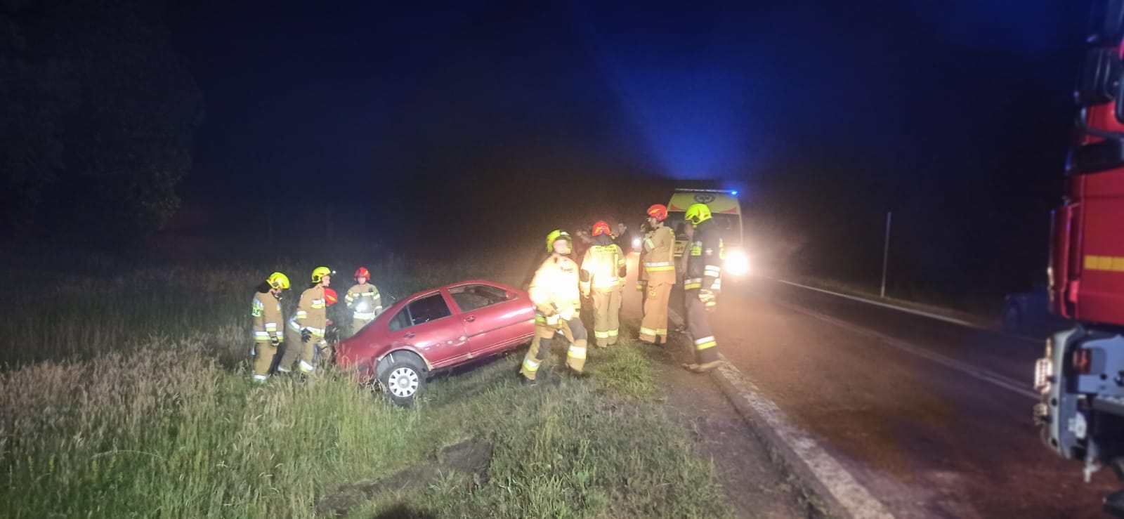W czwartek (14 czerwca) po godzinie 23 kierujący osobowym Volkswagenem nie dostosował prędkości do warunków panujących na jezdni w wyniku czego na łuku drogi stracił panowanie nad pojazdem i zjechał do rowu.