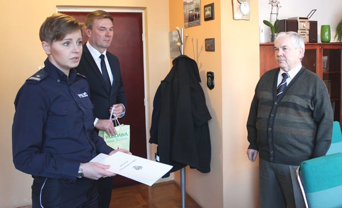 W czwartek (22 grudnia) we włodawskiej komendzie odbyło się spotkanie z trzema niezwykłymi mężczyznami, którzy wykazali się wzorową obywatelską postawą. Pani komendant, podinsp. Wioletta Pawluk, przekazała panom listy gratulacyjne i podziękowała za niezwykłe zachowanie i odwagę, które zasługuje na szczególne uznanie. Do podziękowań dołączył się również burmistrz, Wiesław Muszyński, który wręczył im upominki. – Pierwszy z panów został nagrodzony za to, że 10 grudnia pomógł zatrzymać funkcjonariuszce policji poszukiwanego mężczyznę. Dwóch kolejnych swoją obywatelską postawą wykazało się 16 grudnia, kiedy to będąc świadkami wypadku udzielili pomocy poszkodowanej i zatrzymali sprawcę potrącenia – mówi Elwira Tadyniewicz z KPP we Włodawie. – Podczas spotkania zarówno Pani Komendant jak i Pan Burmistrz w rozmowie z mężczyznami podkreślili, że ich prawidłowa reakcja oraz spontaniczność w niesieniu pomocy można określić jako postawę godną naśladowania, która może stanowić wzór dla innych obywateli.