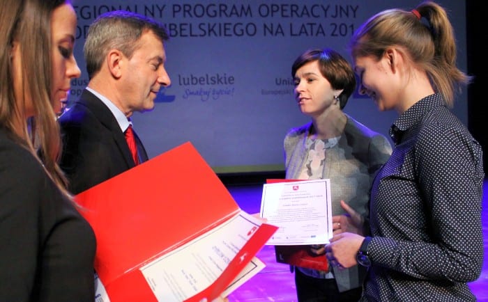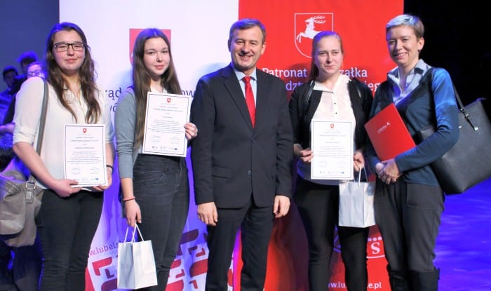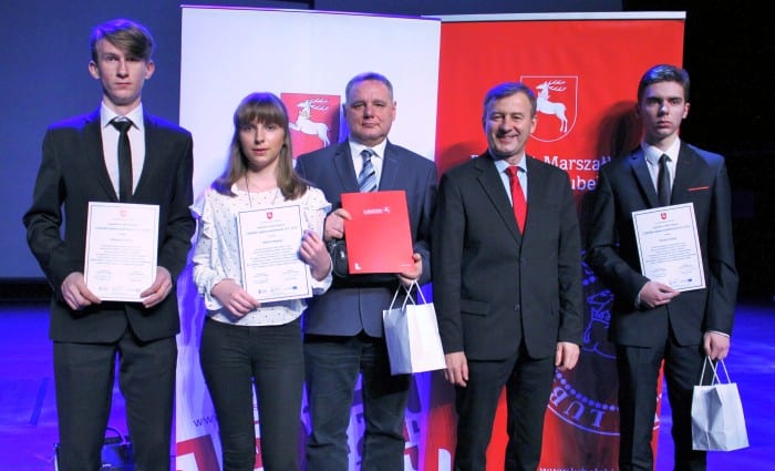 Stypendystom dyplomy wręczali: Krzysztof Grabczuk, wicemarszałek województwa lubelskiego, sekretarz województwa: Anna Augustyniak oraz Marek Kos, radny Województwa Lubelskiego. BAS