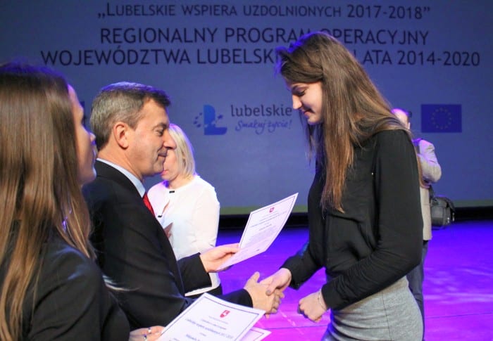 Najwięcej wśród stypendystów, bo aż 54 uczniów, uczy się w I Liceum Ogólnokształcącym im. Stanisława Staszica w Lublinie. Uroczyste wręczenie wyróżnień odbyło się 11 grudnia w Centrum Spotkania Kultur. Każdy ze stypendystów otrzyma w tym roku szkolnym 400 zł miesięcznie. Pieniądze pochodzą z dwóch programów stypendialnych; „Lubelskie wspiera uzdolnionych 2017-2018” i „Lubelska kuźnia talentów 2016-2019” w ramach RPO 2014-2020.