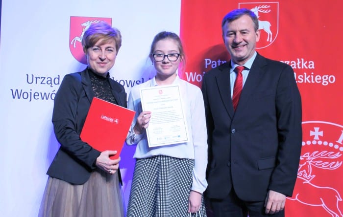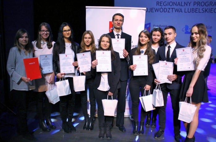 Gimnazjum i Liceum Ogólnokształcące im. Jana III Sobieskiego (9 uczniów), Gimnazjum i Liceum Ogólnokształcące im. Kazimierza Wielkiego (4 uczniów), Gimnazjum i XXI Liceum Ogólnokształcące im. św. Stanisława Kostki (17 uczniów), Gimnazjum nr 6 w Zespole Szkół Ogólnokształcących nr 4 im. Orląt Lwowskich (6 uczniów), I Liceum Ogólnokształcące im. Stanisława Staszica (54 uczniów), II Liceum Ogólnokształcące im. Hetmana Jana Zamoyskiego (15 uczniów), III Liceum Ogólnokształcące im. Unii Lubelskiej (32 uczniów), Medyczne Studium Zawodowe im. Stanisława Liebharta (6 uczniów), Pallotyńskie Gimnazjum i Liceum Ogólnokształcące im. Stefana Batorego (4 uczniów), Prywatna Szkoła Podstawowa i Liceum im. Królowej Jadwigi (14 uczniów), Prywatne Gimnazjum i Liceum Ogólnokształcące im. Ignacego Jana Paderewskiego (12 uczniów), Szkoła Podstawowa nr 18 im. Macieja Rataja (6 uczniów), Szkoła Podstawowa nr 28 (5 uczniów), Szkoła Policealna Pracowników Służb Społecznych im. Andrzeja Bączkowskiego (5 uczniów), Technikum Budowlano-Geodezyjne w Państwowych Szkołach Budownictwa i Geodezji im. Hieronima Łopacińskiego (6 uczniów) Technikum Chemiczne w Zespole Szkół Chemicznych i Przemysłu Spożywczego im. Generała Franciszka Kleeberga (5 uczniów), Technikum Ekonomiczne w Zespole Szkół Ekonomicznych im. Augusta i Juliusza Vetterów (10 uczniów), Technikum Ekonomiczno-Handlowe w Zespole Szkół nr 1 im. Władysława Grabskiego (5 uczniów), Technikum Elektroniczne im. Obrońców Lublina 1939 roku (33 uczniów), Technikum Gastronomiczno-Hotelarskie w Zespole Szkół nr 5 im. Jana Pawła II (5 uczniów), Technikum Transportowo-Komunikacyjne w Zespole Szkół Transportowo-Komunikacyjnych im. Tadeusza Kościuszki (4 uczniów), XXIX Liceum Ogólnokształcące im. cc. mjr Hieronima Dekutowskiego ps. „Zapora” (5 uczniów), XXX Liceum Ogólnokształcące im. Księdza Jana Twardowskiego (4 uczniów), I Liceum Ogólnokształcące im. Władysława Broniewskiego w Świdniku (5 uczniów).