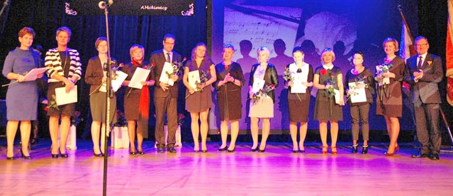 W uroczystości z okazji Dnia Edukacji Narodowej, które odbyły się w Krasnostawskim Domu Kultury w czwartek, uczestniczyli m.in.: wicemarszałek województwa lubelskiego Krzysztof Grabczuk, burmistrz Hanna Mazurkiewicz, starostowie Janusz Szpak i Henryk Czerniej oraz przewodniczący rady miasta – Edward Kawęcki i rady powiatu – Marek Nowosadzki. Najważniejsi byli jednak oczywiście krasnostawscy pedagodzy. Ponad 40 z nich otrzymało podczas uroczystości specjalne nagrody przyznane przez burmistrz Mazurkiewicz. Wyniosły one od tysiąca do 1,7 tys. zł. Oto nagrodzeni: Zespół Szkół nr 1 – Marzena Morylowska, Anna Bobryk, Alicja Bojarczuk, Elżbieta Garbowska, Andrzej Jakubowski, Dorota Korkosz-Ćwir, Jolanta Lewandowska-Giereś, Agnieszka Majewska, Renata Suryś, Dorota Wodyńska-Berbeć oraz Agnieszka Wereda, Zespół Szkół nr 4 – Alicja Kasprzak-Żeżuła, Marta Cięciera, Katarzyna Pocińska, Dorota Rzeczycka-Brodzik, Monika Skrzypa, Dorota Szewczak, Sylwia Szymańska, Jolanta Wołos oraz Agnieszka Rybczyńska-Manachiewicz, Zespół Szkół nr 5 – Justyna Haładyj, Mariusz Bąk, Inga Droszcz, Jolanta Kuc, Bożena Mąka oraz Teresa Miszczak, Przedszkole nr 1 – Anna Mrozek, Wiesława Bojko, Przedszkole nr 4 – Agnieszka Guz, Agnieszka Bosowska-Maciejewska, Przedszkole nr 5 – Edyta Czerw, Małgorzata Gwarda, Przedszkole nr 6 – Izabela Sawa, Marzena Jędrzejewska, Przedszkole nr 8 – Małgorzata Nowicka.