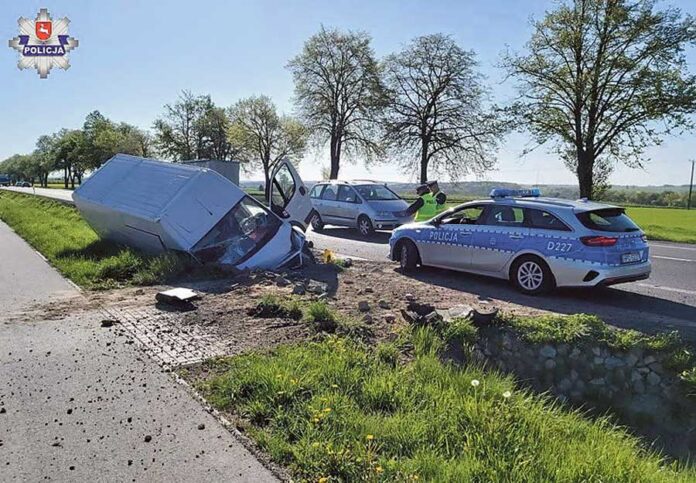 Do wypadku doszło przed godziną 6, we wtorek (10 maja), na terenie powiatu świdnickiego. W Brzeziczkach, na prostym odcinku drogi, 19-letni mieszkaniec gminy Chełm kierujący busem marki Ford zjechał na pobocze, a następnie uderzył w betonowy przepust. Pojazd wywrócił się na lewy bok. Pasażer (31-letni mieszkaniec gminy Żmudź) został uwięziony w aucie – miał zakleszczone obie nogi.