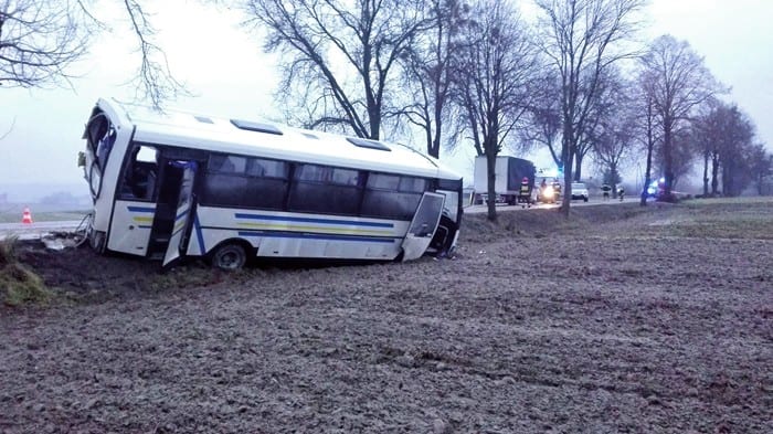 Do szpitala początkowo przewiezione zostały cztery osoby podróżujące autobusem, niedługo po zdarzeniu do kliniki zgłosiły się jednak kolejne osoby skarżące się np. na bóle głowy. W sumie do szpitali w Krasnymstawie i Lublinie trafiło ośmiu pasażerów autobusu i wspomniany kierowca Fiata. – Jeden z mężczyzn ma uraz kręgosłupa i połamane żebra, inny pękniętą czaszkę – wylicza Wasilewski. Kierowca autobusu, 50-letni mieszkaniec gminy Krasnystaw był trzeźwy. Od kierującego busem pobrano krew do badań. Policjanci wraz z prokuratorem wyjaśniają wszystkie okoliczności zdarzenia. (kg, fot. Straż Pożarna Krasnystaw)