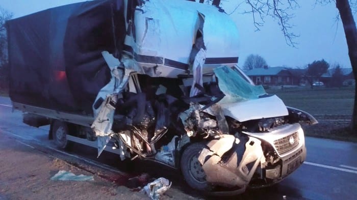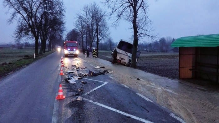 Do tragedii doszło w czwartek, 7 grudnia, o szóstej rano. Drogą krajową nr 842 jechał bus marki Fiat wiozący pracowników jednej z meblarskich firm. – W pewnej chwili dostawcze auto wbiło się w tył stojącego na przystanku autobusu – opowiada Piotr Wasilewski, rzecznik krasnostawskiej policji. Do zdarzenia doszło w momencie, gdy do autokaru wsiadali pasażerowie. Siła uderzenia była tak silna, że ważący kilka ton pojazd wyleciał z drogi. – Dostawczym fiatem podróżowały dwie osoby, kierowca, 56-letni mieszkaniec gminy Kolbuszowa, z obrażeniami ciała trafił do szpitala, ale jego życiu nic nie zagraża. Niestety, pomimo szybkiej akcji ratowniczej na miejscu zmarł jego kolega z pracy, 21-letni mieszkaniec Mielca – dodaje.