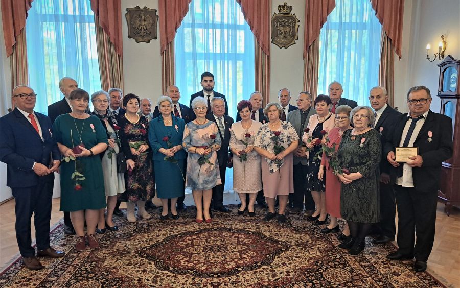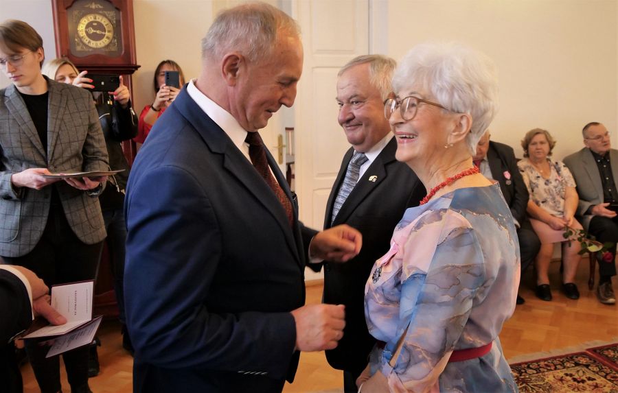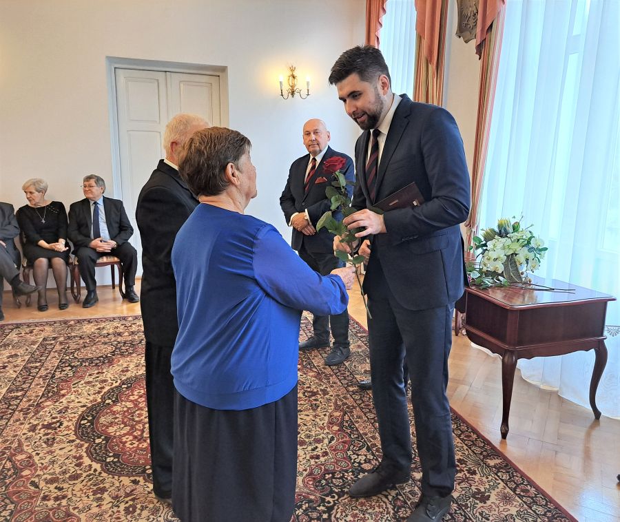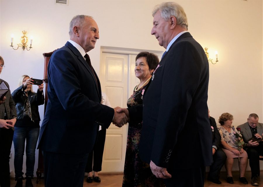 Złote gody świętowało dwadzieścia par z Chełma. Uroczystość odbyła się w Urzędzie Stanu Cywilnego w Chełmie. Na dostojnych jubilatów czekały odznaczenia „Za długoletnie pożycie małżeńskie” przyznane przez Prezydenta Rzeczpospolitej Polskiej, kwiaty, serdeczności i najlepsze życzenia od gości. Oprócz najważniejszych uczestników uroczystości w wydarzeniu wzięli udział m.in. Bolesław Gzik – wicewojewoda lubelski, Jakub Banaszek – prezydent Chełma i Longin Bożeński – przewodniczący Rady Miasta Chełm. Jubilatom wręczono także pamiątkowe tabliczki ufundowane przez chełmski samorząd. Lista odznaczonych par: Halina i Ryszard Mękal, Urszula i Tadeusz Dubietis, Stanisława i Eugeniusz Waluch, Marianna i Mieczysław Staniuk, Bożenna Żurek-Matysiak i Jerzy Matysiak, Marianna i Marek Dziewulscy, Janina i Janusz Chmielewscy, Irena i Jan Wójcik, Teresa i Wiesław Suprewicz, Jadwiga i Stanisław Jarzynowscy, Danuta i Roman Woźnica, Maria i Bogusław Kielech, Alina i Jan Królikowscy, Władysława i Zbigniew Drewniak, Danuta i Zdzisław Naszczoccy, Krystyna i Leszek Trusz, Danuta i Leszek Siwiec, Alina i Władysław Grel, Daniela i Józef Solińscy, Barbara i Jan Juś. (opr. mo, fot. UM Chełm)