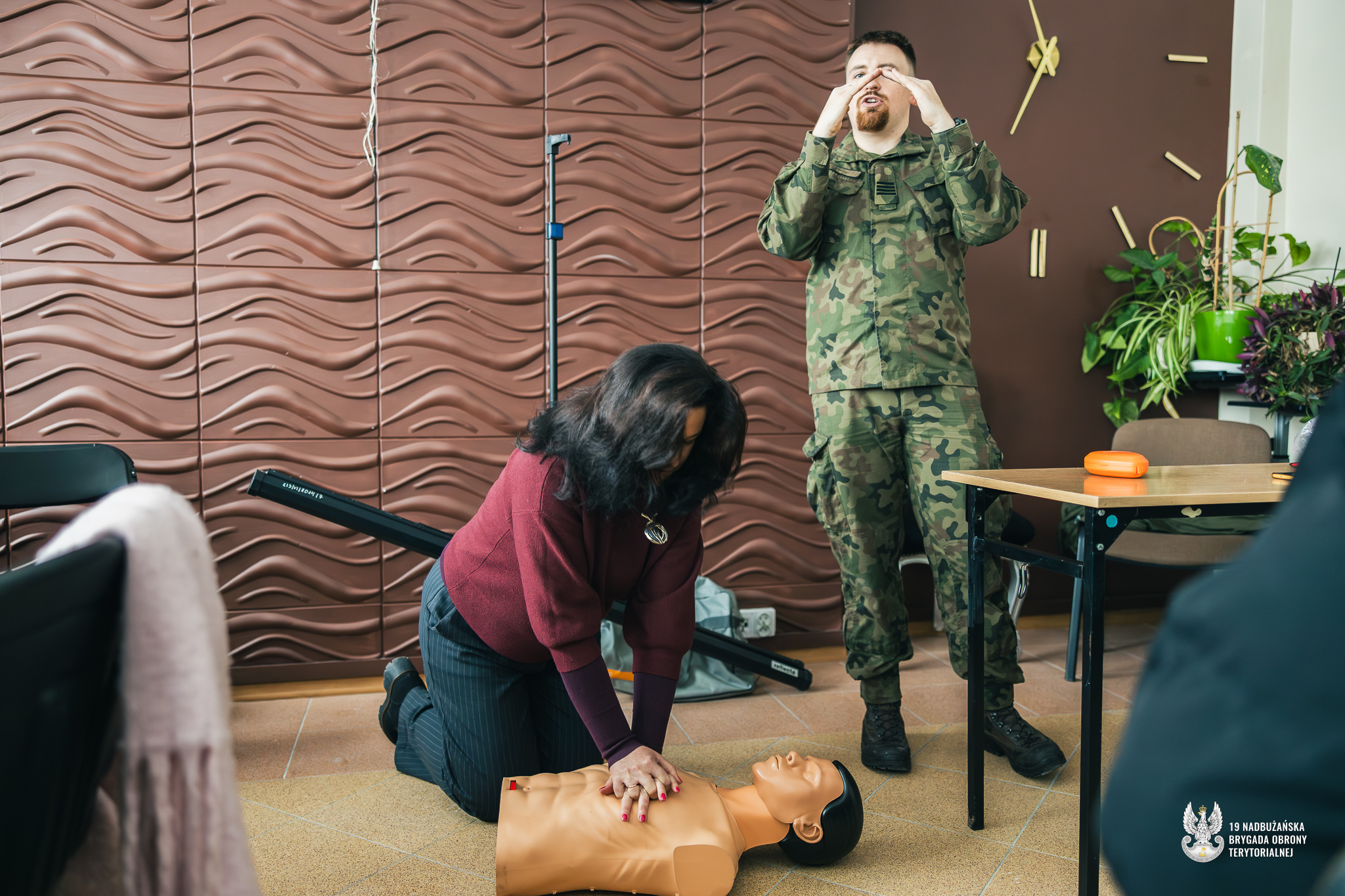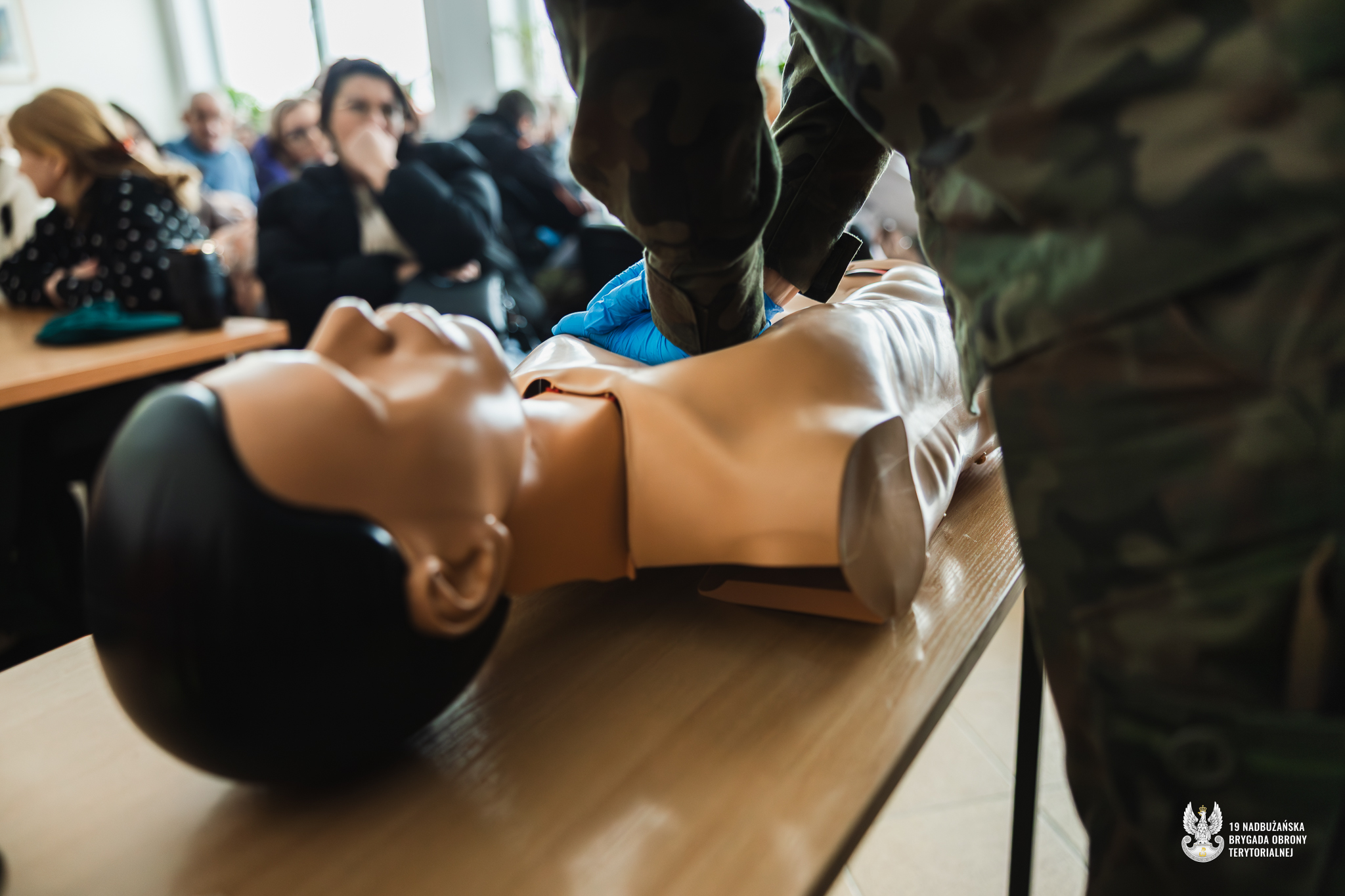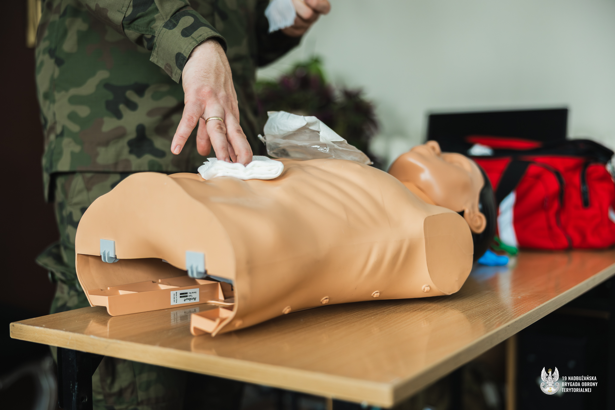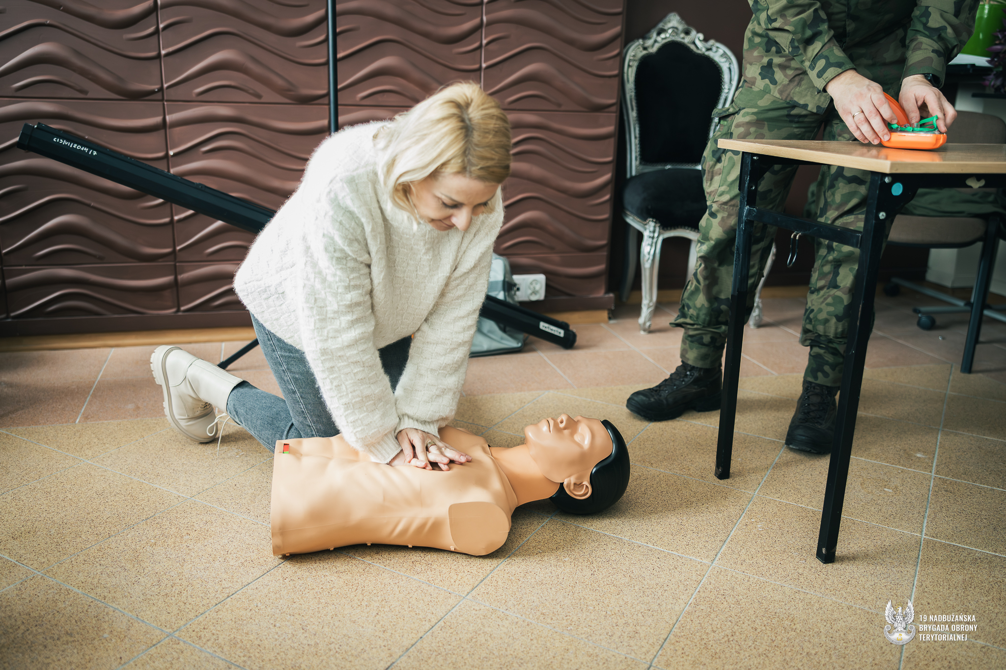– Każdy z nas może się znaleźć w sytuacji, w której trzeba będzie udzielić komuś pomocy np. podczas wypadku, zasłabnięcia itp. I nie chodzi tylko o osoby postronne, ale także członków rodziny czy znajomych. Dobrze wiedzieć jakie czynności wykonywać krok po kroku, jak szybko zareagować, żeby skutecznie pomóc – mówi plut. Jakub Gering z 19. NBOT.