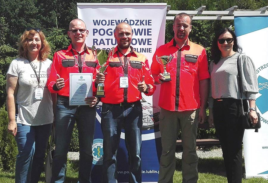 Naszą Stację Ratownictwa Medycznego reprezentował zespół w składzie: Kamil Kociubiński, Daniel Kania, Mariusz Celiński. Zespół musiał się zmierzyć z siedmioma konkurencjami. Na zadaniu nocnym musiał przejąć kontrolę nad tłumem studentów i wykonać kardiowersję, pomóc mężczyźnie z udarem i jego koledze z hipoglikemią komunikującemu sie w obcym języku. Drugi dzień zaczął się od walki z anafilaksją i nagłym zatrzymaniem krążenia u dziecka, rozpoznawaniem różnych zaburzeń rytmu serca, wypadkiem drogowym połączonym ze strzelaniną, gdzie przydały się wyuczone standardy medycznego ratownictwa taktycznego. Zespół musiał także wykonać książkową procedurę intubacji, podczas gdy karetka pokonywała tor przeszkód. Finalnie chełmski team zajął drugie miejsce na podium i był najlepszym zespołem w jednej z konkurencji. (r)