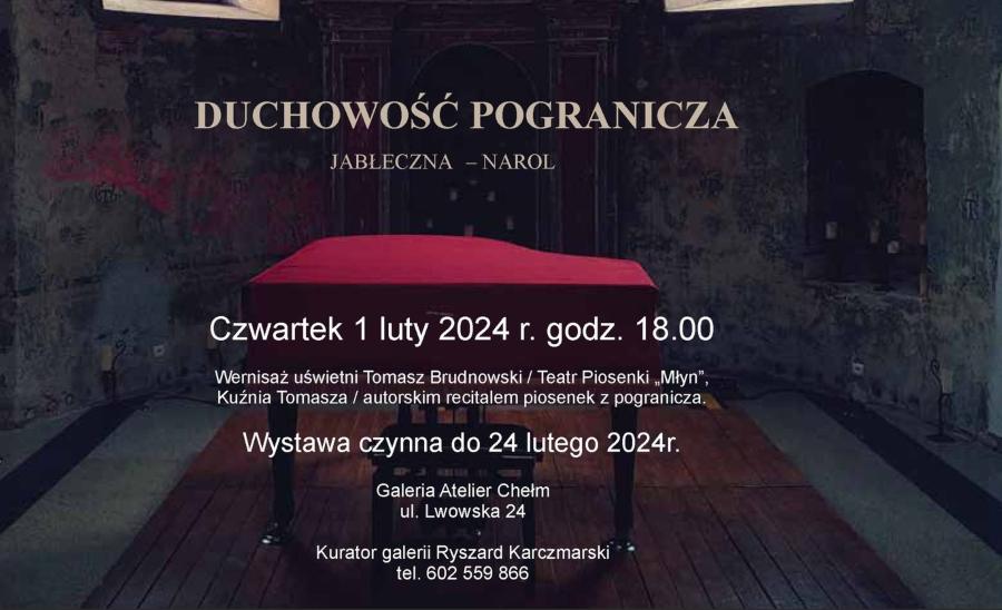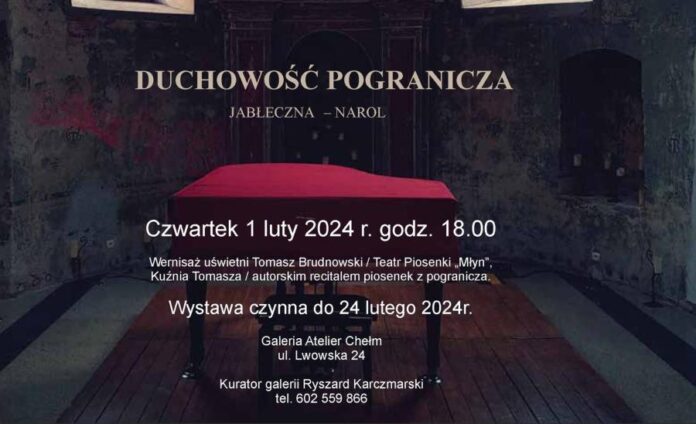 Szykuje się prawdziwa gratka dla miłośników fotografii plenerowej. 1 lutego o godz. 18.00 w Galerii Atelier w Chełmie zaplanowano wernisaż wystawy „Duchowość pogranicza – Jabłeczna-Narol”. Spotkanie uświetni Tomasz Brudnowski z Teatru Piosenki „Młyn” i „Kuźnia Tomasza” z autorskim recitalem piosenek z pogranicza. Swoje prace wystawiają też autorzy z Chełma – Ryszard Karczmarski, Dariusz Kostecki, Jarosław Tulikowski. Andrzej Zygmuntowicz, artysta fotograf tak opowiada o wystawie: „…Plenery z cyklu „Duchowość pogranicza”, a jeszcze bardziej poplenerowe wystawy, są wizualnym komentarzem dotyczącym dynamicznie przebiegających zmian. Wśród zgromadzonej, solidnej ilości zdjęć, znajdziemy obrazy wyławiające ślady tego, co wydarzyło się dawno temu, gdy dominowały tu królestwa lub cesarstwa, tego co przyniosły szaleństwa XX wieku z wojnami, ludobójstwem, ale i szalonymi przemianami technologicznymi i cywilizacyjnymi, po sytuacje najnowsze, uwypuklające indywidualizm i wolę jednostki, przy jej zaangażowanym uczestnictwie w globalnym konsumpcjonizmie, sterowanym przez współczesne media, w tym społecznościowe…. Plenery w Narolu są kontynuacją odbywających się od wielu lat plenerów pod wspólnym hasłem „Duchowość pogranicza”. Wszystkie dotychczasowe miały miejsce na wschodnich obszarach Polski, gdzie wielość tradycji duchowych ciągle stanowi istotną część tamtejszej kultury. Przed spotkaniami w Narolu plenery odbywały się w pobliżu granicy polsko-białoruskiej i niektóre z historycznych wątków, dotyczących całego naszego wschodu, były rzadziej podejmowane. Narol, leży bliżej granicy z Ukrainą i przez swoje usytuowanie podpowiada kilka nowych tematów…”.
