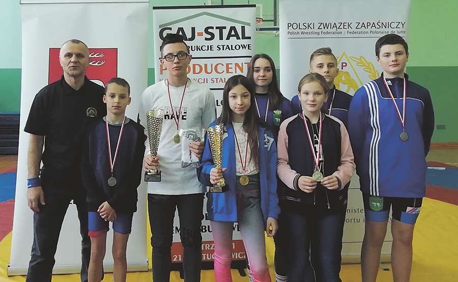 Na drugim stopniu podium z medalami ze srebrnego kruszcu stanęli: Damian Woźnicki, Michał Woźniak i Gabriela Czarnecka. Trzecie miejsce i brązowy krążek zdobył Maksymilian Szwalikowski. W klasyfikacji drużynowej zespół dziewcząt Cementu Gryf Chełm zdobył drugie miejsce. W turnieju młodych zapaśników i zapaśniczki prowadzili Mirosław Czwaliński oraz Dariusz Kucharski. (r)