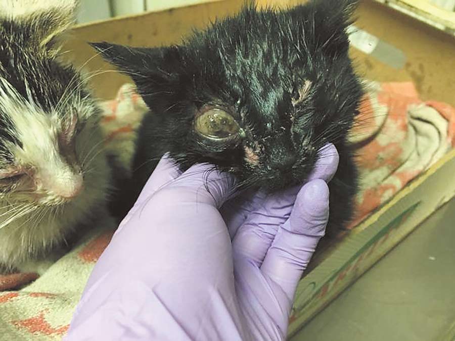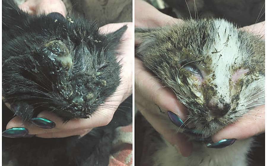 Całe zaklejone ropą, nie było widać, gdzie mają pyszczki. Wypływające oczka, brak możliwości otwarcia zaklejonych ust… Na całym ciele były odparzenia od ropy. Nigdy nie spotkaliśmy się z kotkami w tak tragicznym stanie. Były tak słabe, że nie miały siły podnieść główek. Wiadome było od początku, że nie uda się uratować wszystkich oczu. Obie mają tylko po jednym. Przebywają w klinice, gdzie zostały poddane leczeniu, czekają na zabiegi amputacji gałek ocznych – opowiadały nam panie z krasnostawskiej sekcji Straży Ochrony Zwierząt.