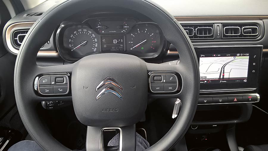 Pod maską testowego egzemplarza pracuje najmocniejszy i najbardziej dynamiczny silnik dostępny w gamie C3. To trzycylindrowy motor benzynowy o pojemności 1,2 litra, który generuje 110 KM i 205 Nm. W połączeniu z lekkim nadwoziem gwarantuje dobre osiągi. Do setki C3 startuje w niewiele ponad 9 s. Spalanie w cyklu mieszanym wynosi ok. 6,5 – 7 l benzyny. Być może mogłoby być niższe, gdyby w aucie zamontowano nie 5- lecz 6-biegową skrzynię.