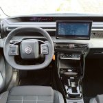 We wnętrzu uwagę zwraca minimalistyczna deska rozdzielcza, pozbawiona klasycznego zestawu zegarów. Kluczowe informacje wyświetlane są na specjalnym pasku pod szybą, tuż pod linią wzroku kierowcy. Rozwiązanie to pozwala skupić się na drodze i jednocześnie kontrolować prędkość czy poziom naładowania baterii.