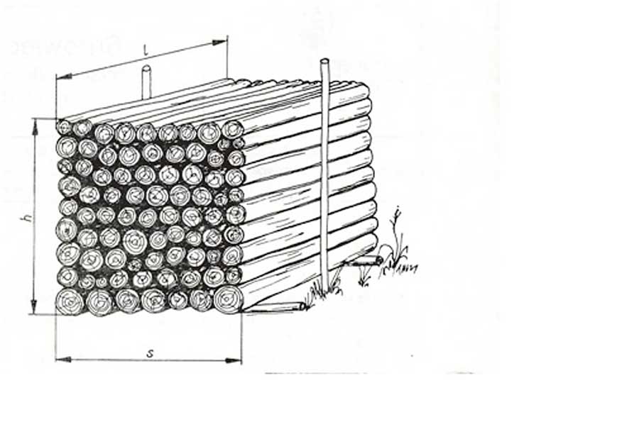 Jeden metr przestrzenny to stos ułożony z wałków o wymiarach: 1x1x1 m, zawiera pomiędzy 0,65-0,72 m sześc. Bierze się pod uwagę stos drewna wraz z korą i wolną przestrzenią pomiędzy kawałkami. Ważnym jest również to, że w metrze przestrzennym różnych gatunków jest różna ilość drewna, choćby z tego powodu, że jedne gatunki dają się układać ściśle i mają np. cieńszą korę. Istotne jest też, że dla drewna krótkiego te zamienniki są inne niż dla drewna długiego (drewna długiego nie da się ułożyć tak ściśle i siłą rzeczy jest go mniej w ułożonym stosie). Koniec końców cena za 1 metr przestrzenny jest inna niż za 1 metr sześcienny.