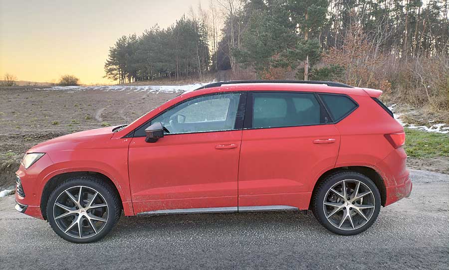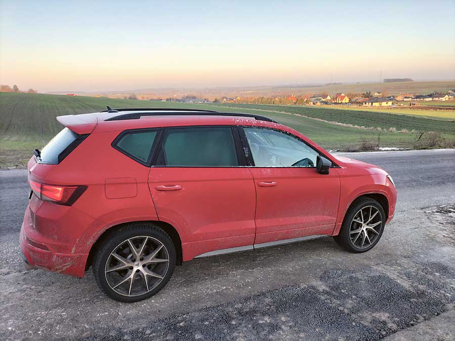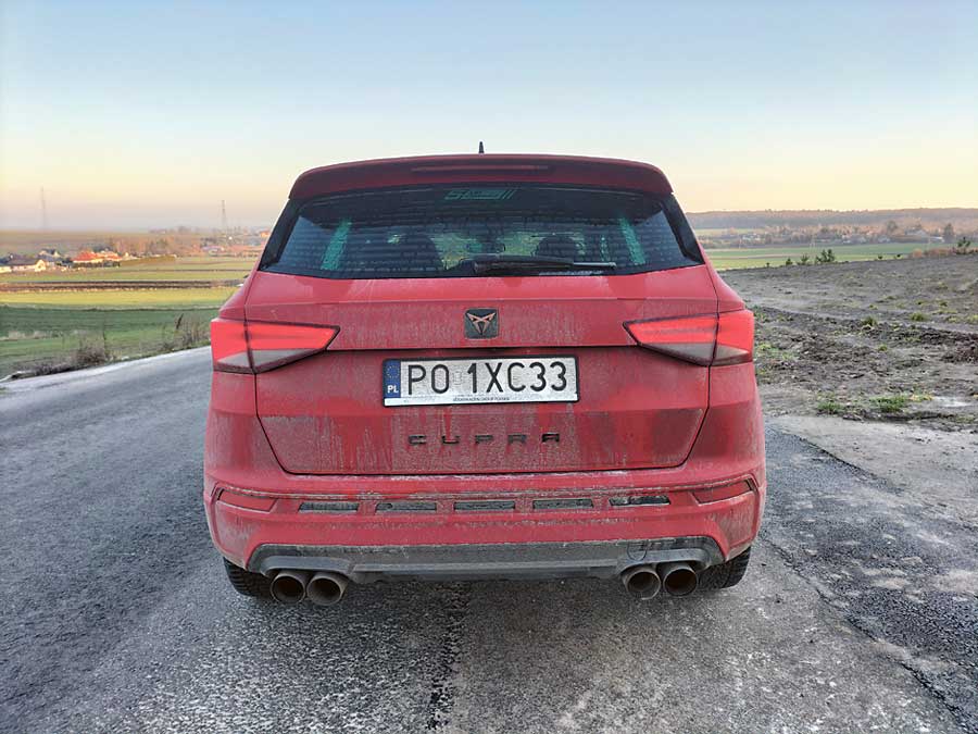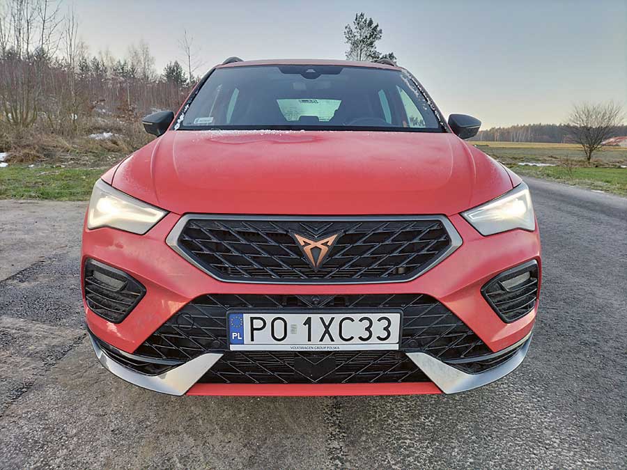 Oczywiście rzeczą nie tylko naturalną, ale wręcz konieczną w przypadku Cupry było utwardzenie zawieszenia. Na początku naszej znajomości z tym modelem mieliśmy trochę obaw co do trakcji, ale szybko się ich pozbyliśmy, bo auto, jak na małego SUV-a, trzyma się drogi wręcz imponująco. Tym autem równie szybko co na wprost można też pojechać po zakrętach. Stabilność zapewnia nie tylko adaptacyjne zawieszenie z kilkoma ustawieniami, ale też i napęd 4×4. Świetne są też fotele, które bardzo dobrze trzymają nasze ciało w zakrętach.