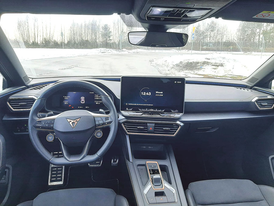 Jakość materiałów jest poprawna, choć miejscami bliżej jej do poprawności niż do premium, na które stylistyka próbuje aspirować. Na szczęście sportowe fotele bronią się same. Trzymają ciało pewnie i nie pozwalają zapomnieć, że siedzimy w aucie z ambicjami. Bagażnik? Wystarczająco duży, by pogodzić sportowe aspiracje z codziennym życiem. Cupra udowadnia, że można mieć rodzinne kombi, które nie wygląda jak samochód po kapitulacji marzeń o przyjemności z jazdy.