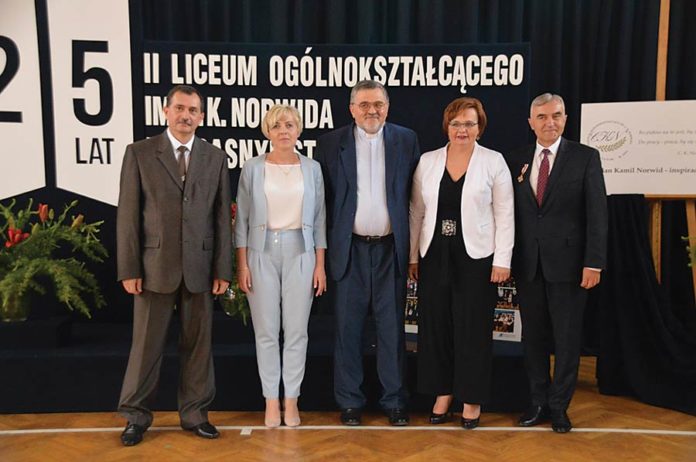 Tym samym odznaczeniem został nagrodzony Marek Nowosadzki – nauczyciel historii pracujący w II LO od początku jego istnienia, czyli od 1993 r. Natomiast Ewa Magdziarz została wyróżniona Medalem Pamiątkowym Województwa Lubelskiego. W imieniu społeczności szkolnej odznaczenie od Krzysztofa Grabczuka odebrała dyrektor Anna Antyga. Wicemarszałek wręczył również dyplomy uznania przyznane przez marszałka województwa lubelskiego, które otrzymali: ks. Roman Skowron, ks. Ryszard Winiarski, Elżbieta Kargul, Beata Pasik i Andrzej Ziarko. Z okazji jubileuszu starosta Szpak wyróżnił pamiątkowym grawertonem byłego dyrektora II LO Edwarda Kaweckiego.
