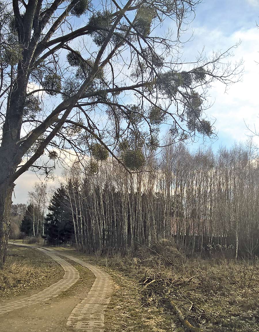 Wielkie drzewa rosną jakieś dwa metry od drogi. Ich konary sięgają daleko poza trakt. Większość topól jest chora – uschnięta lub opanowana przez gęsto je porastające jemioły. Dlatego drzewa są bardzo kruche. Wysoko widać wiele ułamanych kikutów potężnych gałęzi. Złamane konary leżą też na ziemi, wzdłuż drogi. Jest ich wiele. – Praktycznie każda burza czy większy wiatr sprawiają, że łamią się kolejne – mówią ludzie.