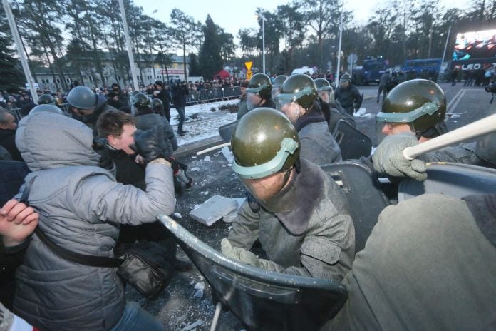We wtorek szturm na zakład przypominał tamten z grudnia 1981 roku. W kierunku pracowników broniących bramy poleciały świece dymne, słychać było strzały i wybuchy. Protestujący zaczęli śpiewać patriotyczne pieśni. Zza bramy do oddziałów szturmowych wyszła młoda dziewczyna z kwiatami.