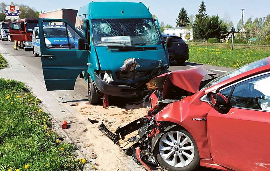 Pięć osób w szpitalu i dwa rozbite pojazdy. To efekt czołowego zderzenia busa z toyotą. Do wypadku doszło w czwartek 5 maja około godz. 9.00 w Izbicy na drodze krajowej nr 17. Całe szczęście, że nikt nie zginął.