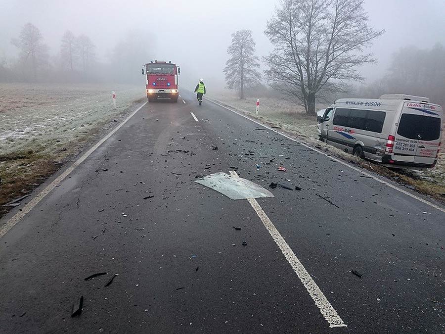 W środę (12 grudnia) po godzinie 7 rano na drodze krajowej nr 82 w miejscowości Kolonia Wytyczno (gm. Urszulin) doszło do wypadku, w którym udział brały dwie osobówki i pasażerski bus. – Skierowani na miejsce policjanci ustalili, że 20-letni mieszkaniec gminy Urszulin, kierując bez uprawnień Skodą Felicją, w gęstej mgle rozpoczął manewr wyprzedzania Skody Octavii i czołowo zderzył się z jadącym z naprzeciwka Mercedesem Sprinterem. Wyprzedzany przez niego pojazd również nie uniknął zderzenia – mówi Bożena Szymańska z KPP we Włodawie.