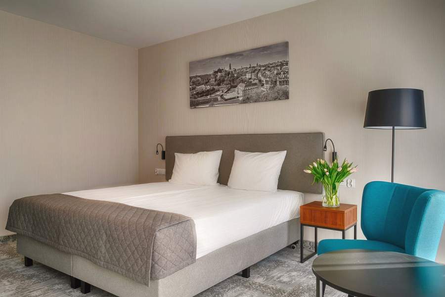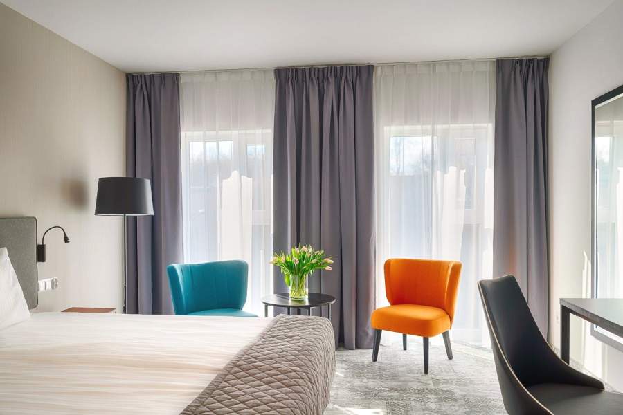 Hotelowi goście mogą bezpłatnie skorzystać z sauny i siłowni. Każdy pokój został wyposażony w duże i wygodne łóżko, telewizor, biurko do pracy oraz zestaw do parzenia kawy i herbaty, dysponuje też przestronną łazienką.