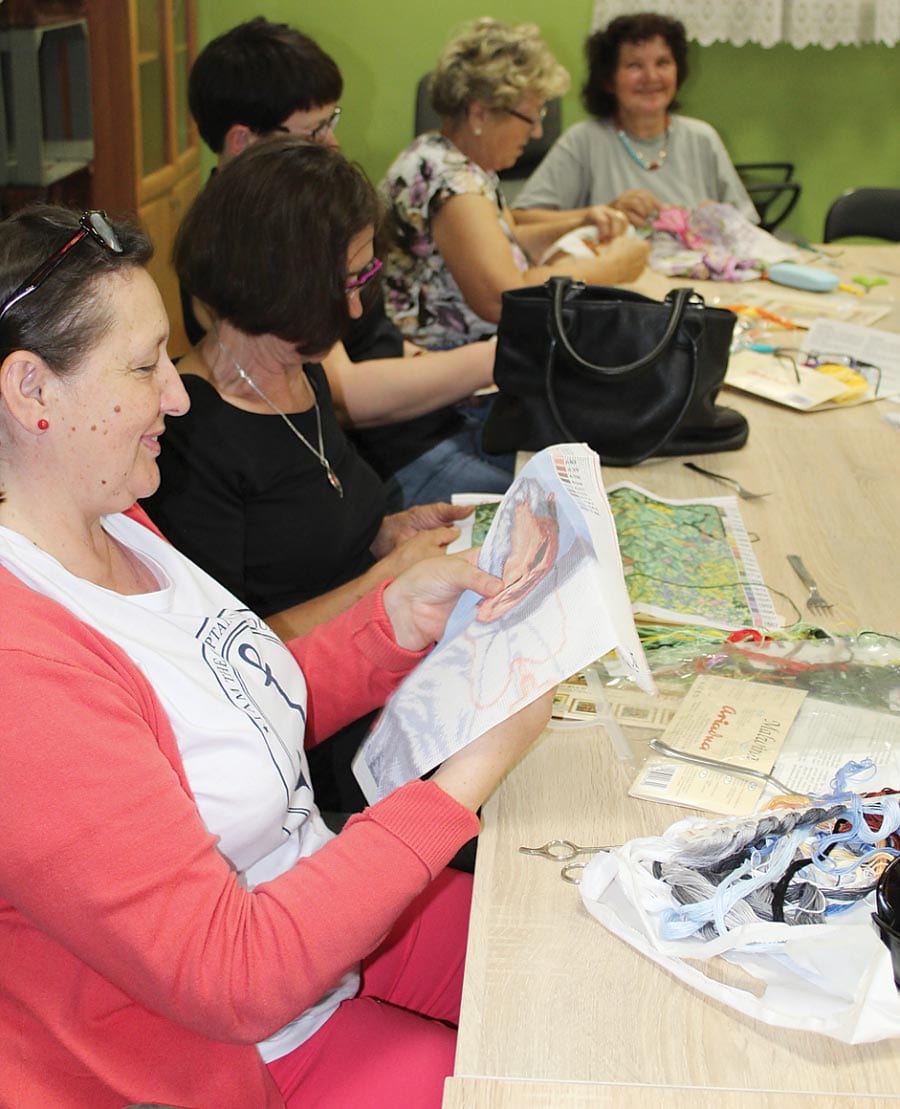 – Okazuje się, że haftowanie to niezwykła przygoda, naprawdę można to zajęcie pokochać – mówi pani Jola. – Z kolei z gotowaniem czy pieczeniem ma do czynienia na co dzień każda z nas. Jednak to, czym zajmujemy się podczas naszych warsztatów to zupełnie coś innego. Wyszukujemy stare przepisy naszych mam, babć i staramy się je odwzorować. W domu nie zawsze jest na to czas, a tu nasze potrawy możemy dopieścić. Niedawno przyrządzaliśmy przepyszną karkówkę. Wkrótce tematem przewodnim będą ryby. Już nie mogę się doczekać.