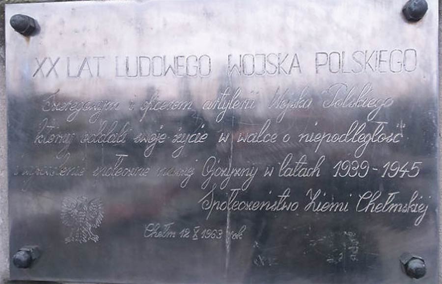 Polscy artylerzyści w latach 1939-1945 nie myśleli o wcielaniu idei komunistycznych (jak to sugerowali pracownicy Instytutu Pamięci Narodowej). Nie myśleli tak niewątpliwie artylerzyści z 2 Pułku Artylerii Ciężkiej Ziemi Chełmskiej im. Hetmana Jana Zamoyskiego stacjonującego w Chełmie oraz 9 Pułku Artylerii Ciężkiej z Włodawy (walczących w różnych miejscach we wrześniu 1939 roku). Takie myśli nie przychodziły artylerzystom walczącym u boku aliantów zachodnich: z 1. Wileńskiego Pułku Artylerii Lekkiej wchodzącego w skład polskiej 1. Dywizji Grenadierów, z 2. Modlińskiego Pułku Artylerii Ciężkiej 2. Dywizji Strzelców Pieszych, z 1. Pułku Artylerii Ciężkiej I Korpusu Polskiego, z 7 Pułku Artylerii Przeciwpancernej z II Korpusu Polskiego. Nie snuli takich planów artylerzyści z jednostek sformowanych na Ziemi Chełmskiej i walczących na froncie wschodnim: z 14. Sudeckiej Brygady Artylerii Przeciwpancernej czy 9. Brygady Artylerii Przeciwpancernej, które zasłynęły z forsowania Nysy Łużyckiej i ciężkich walk w rejonie Budziszyna i Drezna oraz w Czechach. Głównym celem tych polskich żołnierzy i oficerów była walka i zwycięstwo nad hitlerowską III Rzeszą Niemiecką. Wielu żołnierzy i oficerów tych jednostek poległo. Im właśnie poświęcona została ta tablica. Ich ofiary nie mogą umniejszać pracownicy IPN, w wielu wypadkach ferujący decyzje zgodne z aktualnym, lecz niesprawiedliwym trendem. Oni też próbują na nowo, zgodnie z obowiązującą „modą” pisać zafałszowaną historię Polski.