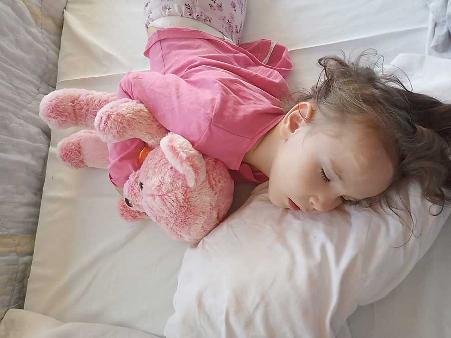 Pani Małgorzata mówi, że jej codzienność to troskliwa opieka nad Basią: karmienie jej, mycie, ubieranie, układanie do snu, a także nocne czuwanie. Dziewczynka często wybudza się, a wtedy całe jej ciało skręca się w atakach bólu.