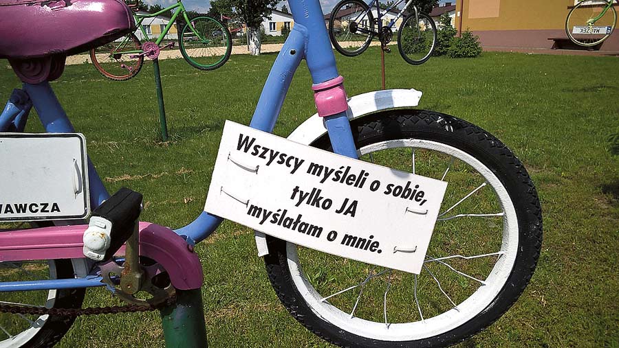 Rowery opatrzone są tabliczkami z napisami. Na najmniejszym widnieje taki: „Wszyscy myśleli o sobie, tylko JA myślałam o mnie”. Rowerek należał do dziewczynki, która do ośrodka trafiła w wieku 3 lat. W ogóle rower dla placówki to jeden z najważniejszych symboli. Każdy podopieczny dostaje na własność jeden. Służy on nie tylko do dojazdów do szkoły, ale uczy odpowiedzialności, systematyczności, pracy.