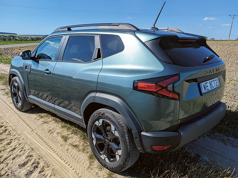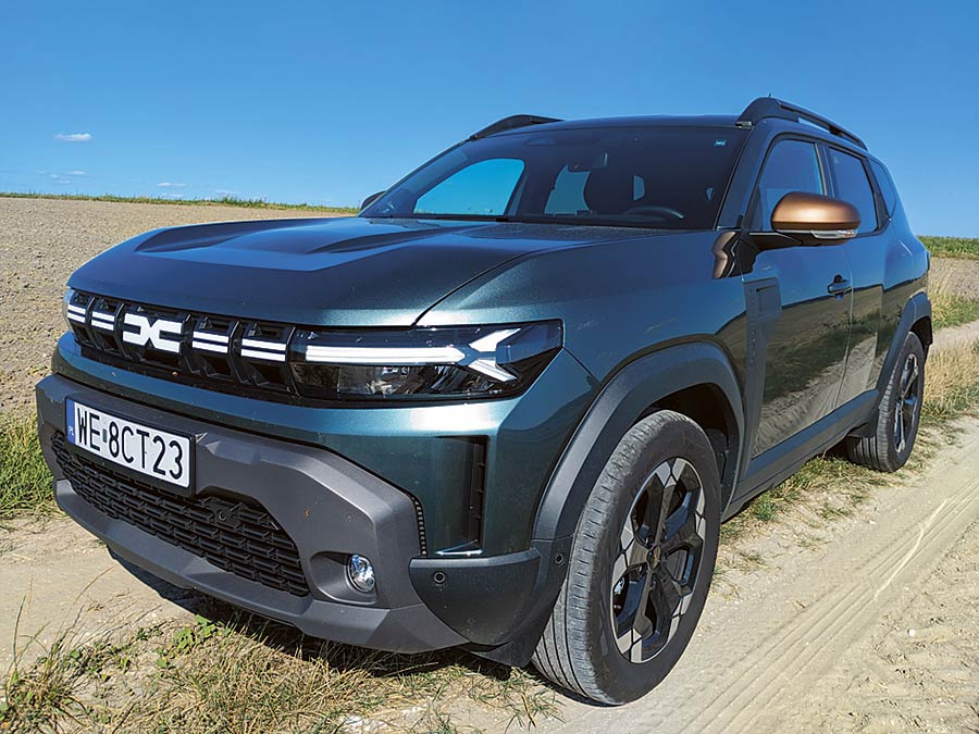 Choć Dacia ma teraz większą konkurencję w postaci głównie chińskich marek, to nadal jej najmocniejszą stroną są ceny. Za nowego Dustera trzeba zapłacić minimum 79900 zł, czyli dokładnie tyle, ile za nową Toyotę Yaris, która jest dwie klasy mniejsza. Odmiana testowa o nawie Extreme to niemal najbogatsza opcja, której cennik otwiera kwota 93900 zł. W pakiecie jest zielony lakier, miedziane lusterka i osłony nadwozia oraz tapicerka o nazwie MicroCloud. Do tego mamy 18-calowe felgi, automatyczną klimatyzację, bezkluczykowy dostęp do auta, 10-calowy wyświetlacz centralny, LED-owe światła, kilka elektronicznych systemów wspomagania jazdy, kamerę cofania, nawigację i tempomat.