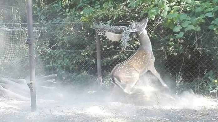 Zwierzę miotało się zaczepione porożem o siatkę wykorzystywaną do gry w siatkówkę. Ciężko było do niego podejść, istniało ryzyko kopnięcia. Na miejsce wezwano strażaków. – Po kilku minutach siatkę przecięto i zwierzę uwolniono. Wystraszony daniel pobiegł w kierunku lasu – mówi nam jeden z mundurowych. (k)