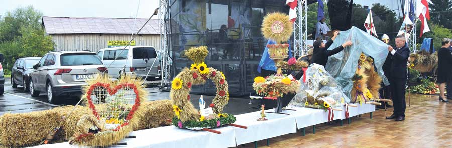 (29 sierpnia) Po żniwach – dożynki. Podczas Gminnego Święta Plonów w Wojsławicach deszczowa aura przypomniała, iż efekt trudu rolników w dużej mierze zależy od pogody. Piękne i starannie wykonane wieńce unaoczniły zaś, że równie wiele zależy od serca włożonego w pracę.
